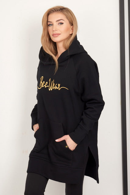 Bardzo modna, długa bluza z wysokiej jakości dzianiny. Model z kapturem i z kieszeniami na przodzie. Ciepła , przytulna i wygodna bluza idealna na chłodniejesz dni.