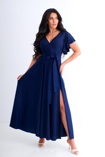 ALICE z brokatem – to sukienka wieczorowa z luksusowej kolekcji PREMIUM!. To idealny przykład sukienki na wesele. Fantastycznie eksponuje kobiece wdzięki, jednocześnie tuszując drobne niedoskonałości. Wcięcie w talii i luźno puszczone biodra wysmuklają sylwetkę, i sprawiają, że wygląda ona zgrabnie, zapewniając przy tym niezwykłą swobodę noszenia. Rozcięcie z przodu dodaje jej zwiewności i lekkości. Dużym atutem tej sukienki jest wysokiej jakości materiał z najmodniejszym w tym sezonie brokatem! W pasie znajduje się gumka, która zdecydowanie poprawia komfort noszenia.