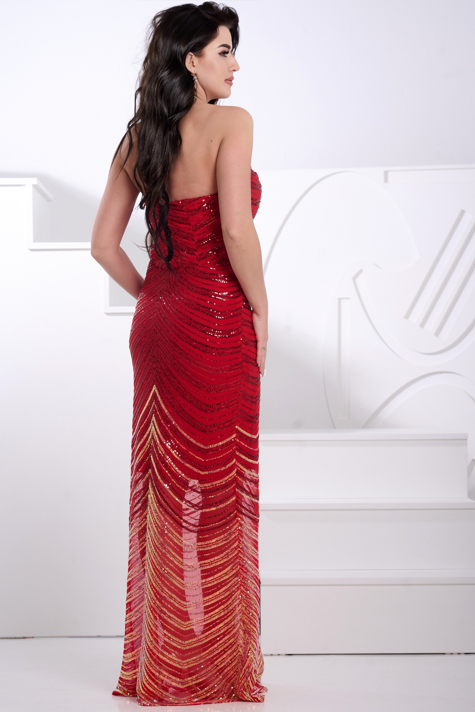 ATENA - Efektowna sukienka bez ramiączek , która podkreśla sylwetkę i przyciąga spojrzenia. Model wykonany z materiału PREMIUM poktytego połyskującymi cekinami, który idealnie dopasowuje się do ciała, akcentując talię i biodra.