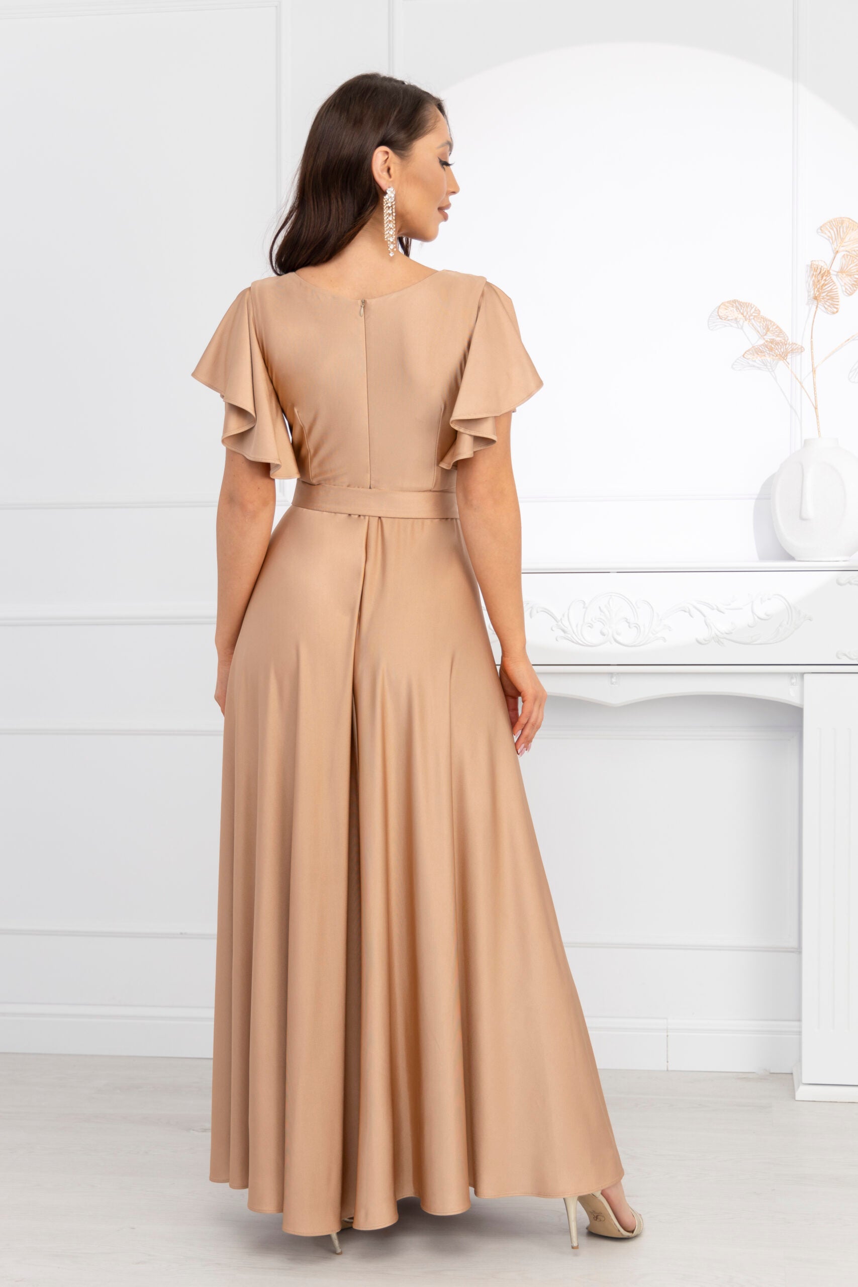 INES – to sukienka wieczorowa z luksusowej kolekcji PREMIUM!. To idealny przykład sukienki na wesele. Fantastycznie eksponuje kobiece wdzięki, jednocześnie tuszując drobne niedoskonałości. Wcięcie w talii i luźno puszczone biodra wysmuklają sylwetkę, i sprawiają, że wygląda ona zgrabnie, zapewniając przy tym niezwykłą swobodę noszenia. Rozcięcie z przodu dodaje jej zwiewności i lekkości. Dużym atutem tej sukienki jest wysokiej jakości, POŁYSKUJĄCY materiał, który się uciąga. W pasie znajduje się gumka, która zdecydowanie poprawia komfort noszenia.
