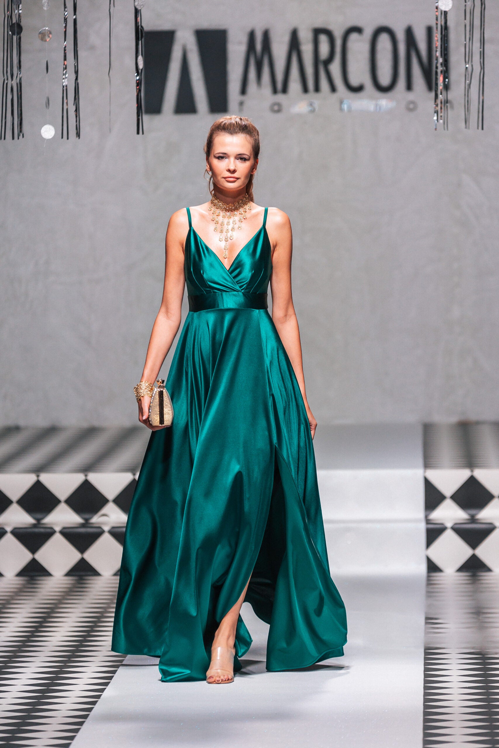 To idealny przykład sukienki na wesele. Fantastycznie eksponuje kobiece wdzięki, jednocześnie tuszując drobne niedoskonałości. Wcięcie pod biustem i luźno puszczone biodra wysmuklają sylwetkę, i sprawiają, że wygląda ona zgrabnie, zapewniając przy tym niezwykłą wygodę noszenia. Rozcięcie na nodze oraz cienkie, regulowane ramiączka dodają jej zwiewności i lekkości.