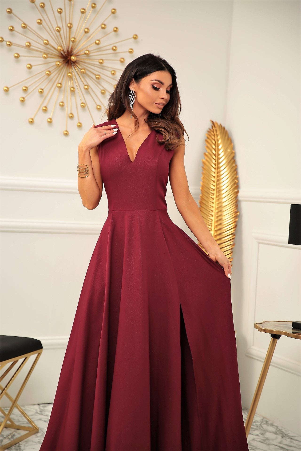 MILENA – to sukienka wieczorowa, która podbiła serca kobiet w różnym wieku. To idealny przykład sukienki na wesele. Fantastycznie eksponuje kobiece wdzięki, jednocześnie tuszując drobne niedoskonałości. Wcięcie w tali i luźno puszczone biodra wysmuklają sylwetkę, i sprawiają, że wygląda ona zgrabnie, zapewniając przy tym niezwykłą wygodę noszenia. Dwa rozcięcia z przodu dodają jej zwiewności i lekkości. Dużym atutem tej sukienki jest wysokiej jakości materiał z mieniącymi się drobinkami, co podkreśla jej wizytowy charakter. Drobinki wspaniale połyskują, ale co ważne nie sypią się! Nie jest to brokat. To zdecydowanie bardzo modna sukienka. Dzięki swej finezji i niepowtarzalności MILENA jest idealna jako sukienka na wesele. Świetnie się sprawdzi jako suknia wieczorowa, na mniejsze lub większe przyjęcia, bale karnawałowe, czy jako sukienka na studniówkę. Będziesz w niej wyglądać wytwornie i z pewnością olśnisz wszystkich wokół.