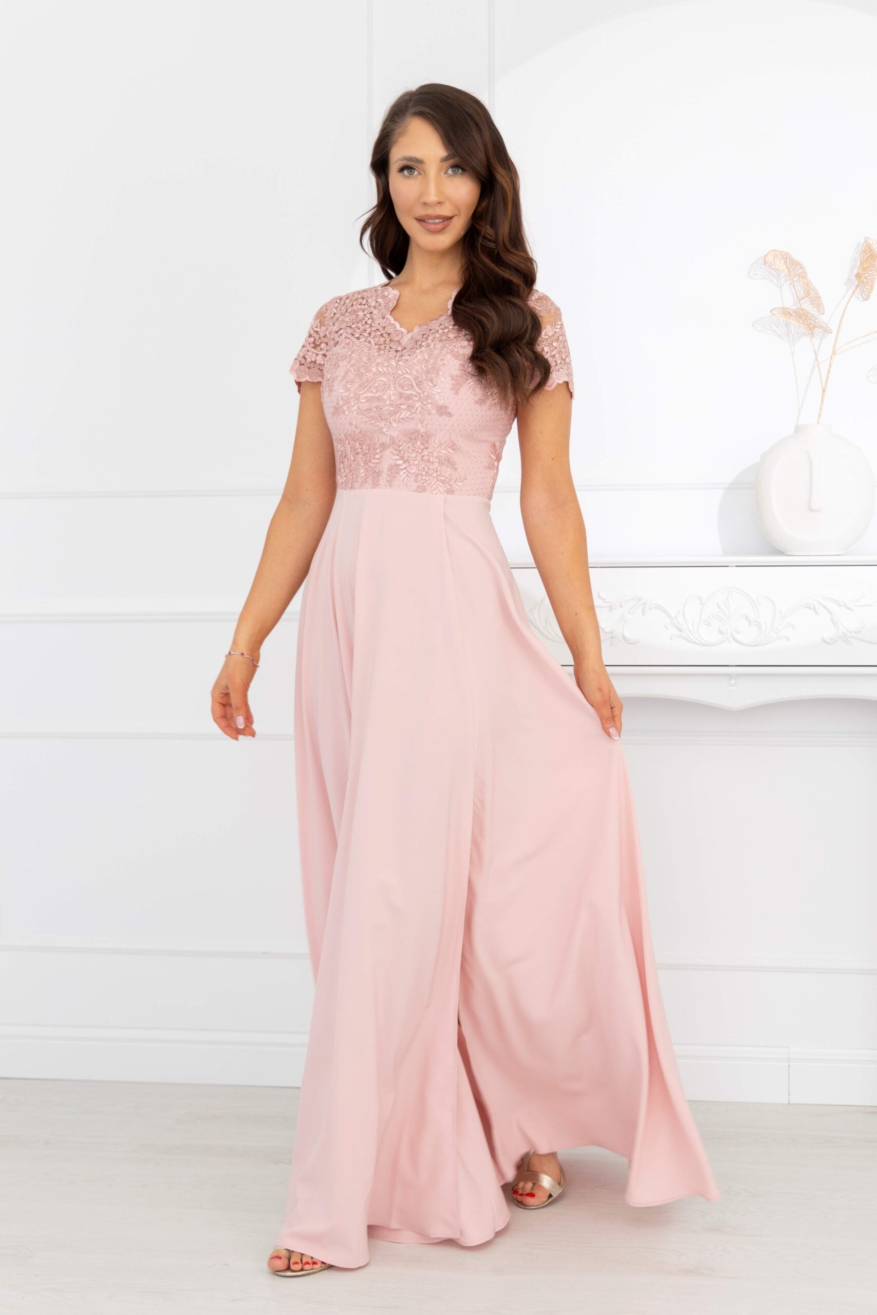 Niezwykle romantyczna, długa sukienka, idealnie się sprawdzi jako sukienka na poprawiny, jak również jako kreacja dla druhen czy mam weselnych.