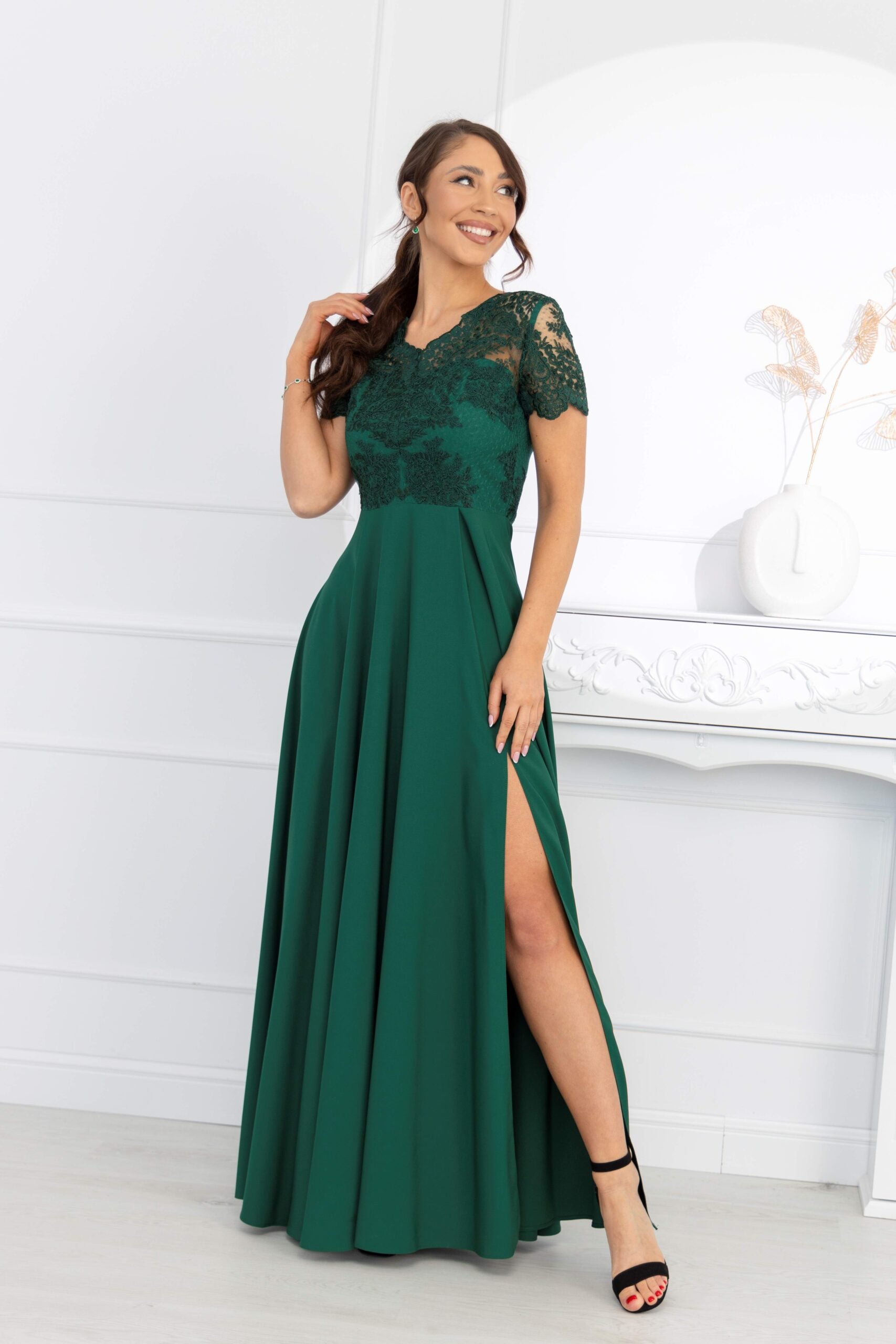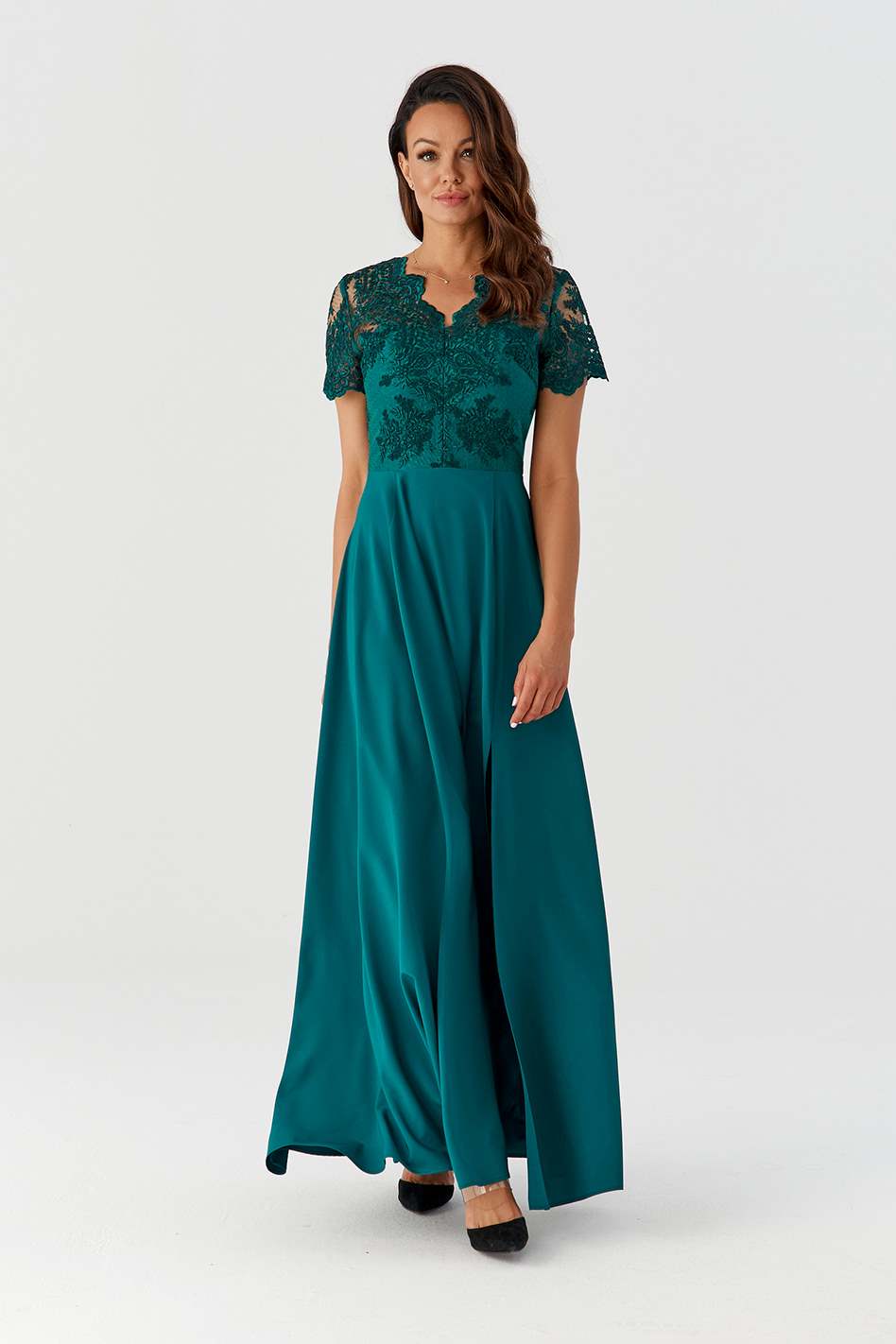 Zestawienie ponadczasowej koronki z delikatną tkaniną to niezapomniany look dla pań w różnym wieku. Dopasowana góra, i luźno puszczone biodra tworzą bardzo atrakcyjną całość. Zmysłowe rozcięcie na nodze nadaje jej lekkości i zwiewności, zapewniając przy tym niezwykłą swobodę noszenia.