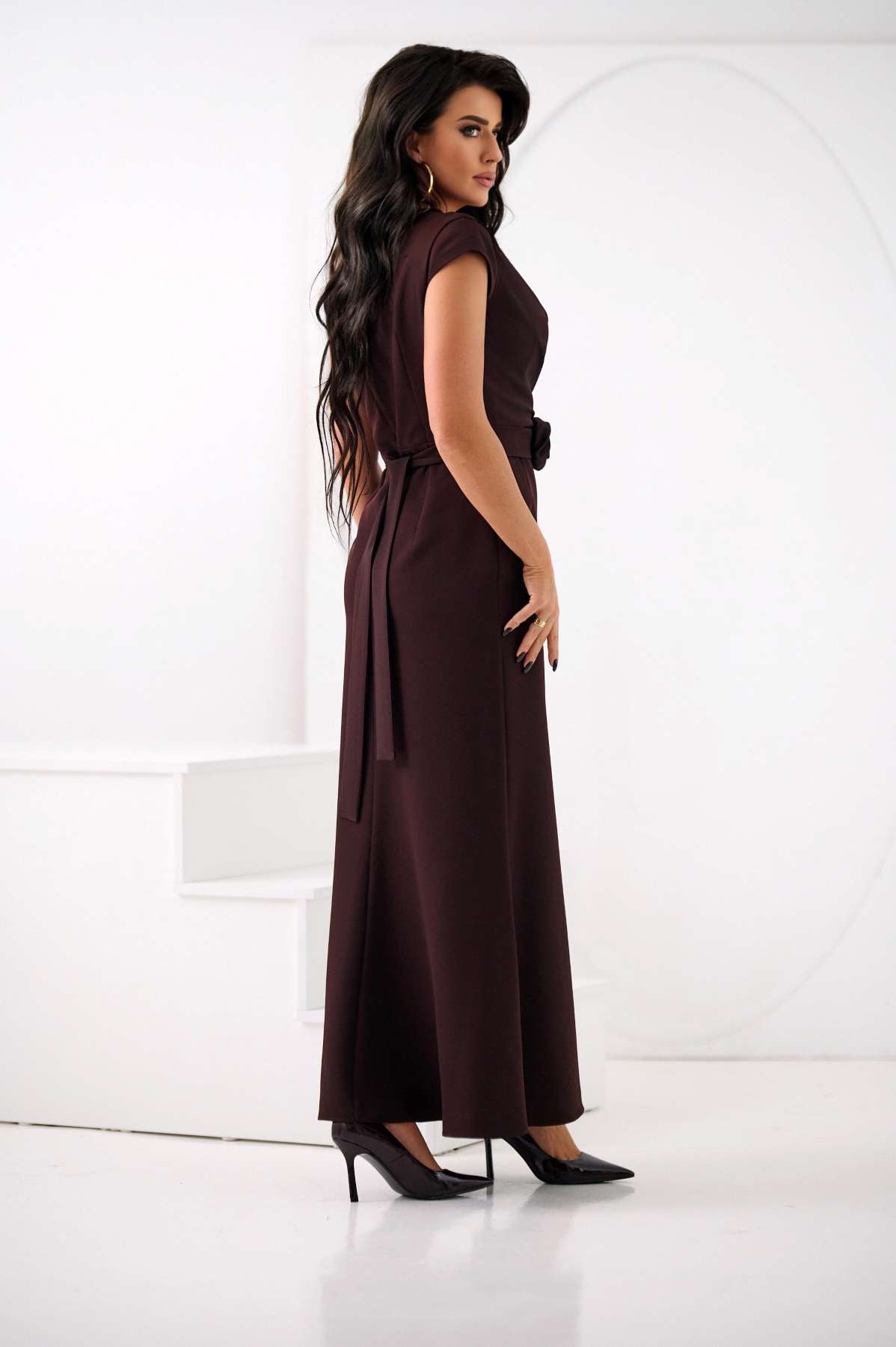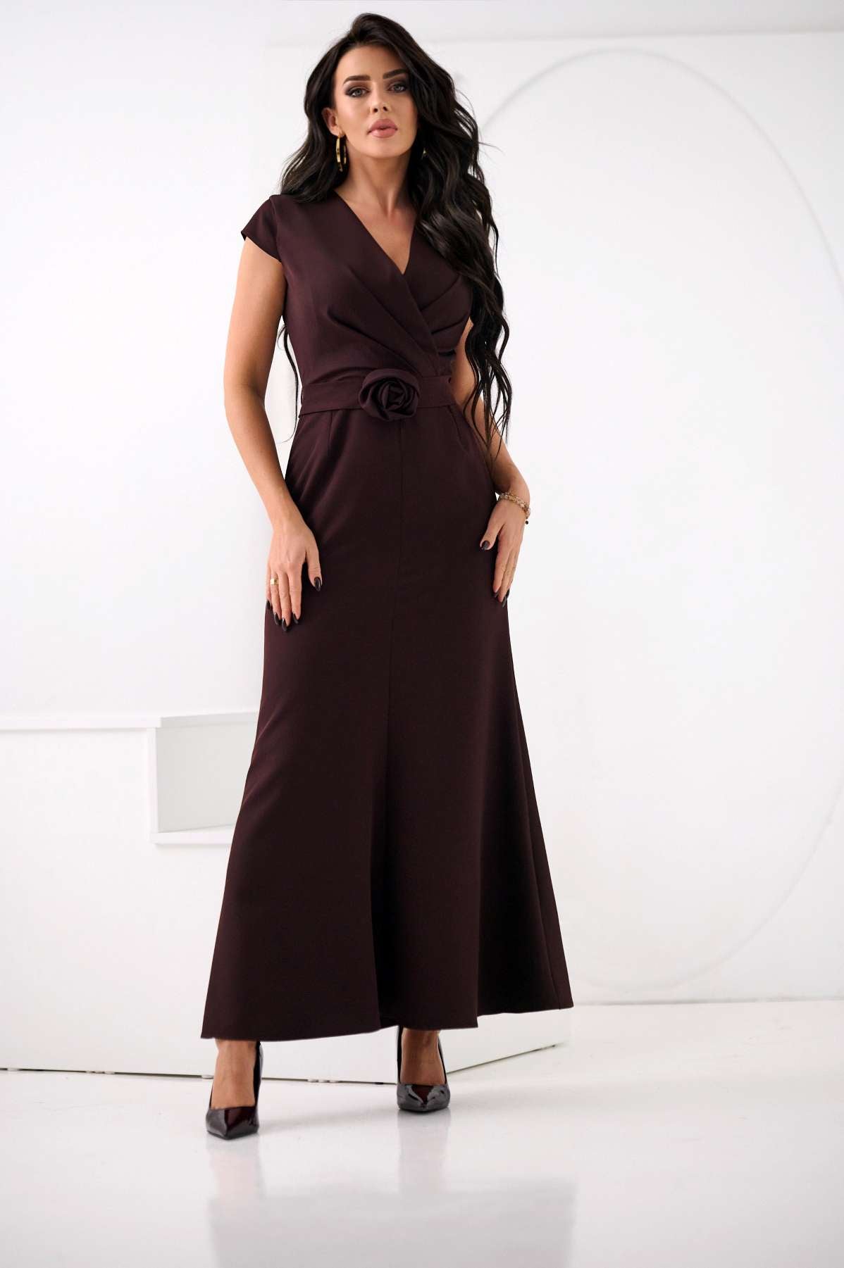 Wyjątkowa i olśniewająca sukienka z dekoracyjnym kwiatem na pasku.