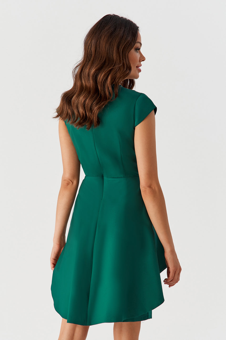Ze względu na swoją konstrukcję i formę koperty, dekolt w tej sukience pomieści większy biust, niż ten podany w tabeli do konkretnego rozmiaru. Jednocześnie zakładki na dekolcie pozwalają zgrabnie dopasować się również do mniejszego biustu niż ten, który podany jest w tabeli.