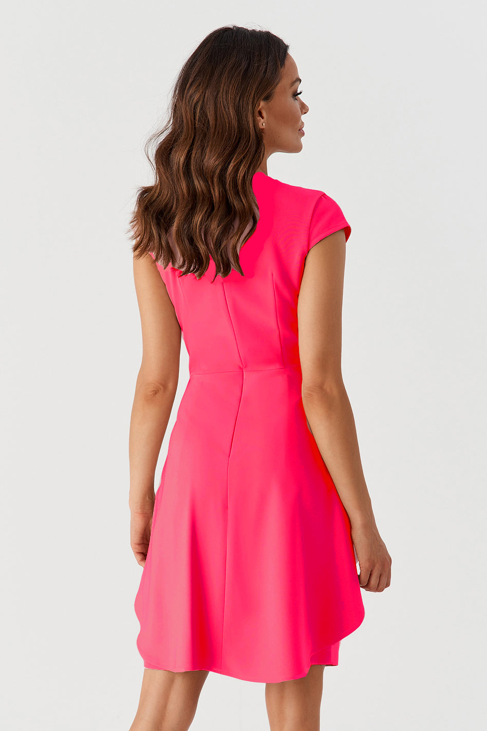 Ze względu na swoją konstrukcję i formę koperty, dekolt w tej sukience pomieści większy biust, niż ten podany w tabeli do konkretnego rozmiaru. Jednocześnie zakładki na dekolcie pozwalają zgrabnie dopasować się również do mniejszego biustu niż ten, który podany jest w tabeli.
