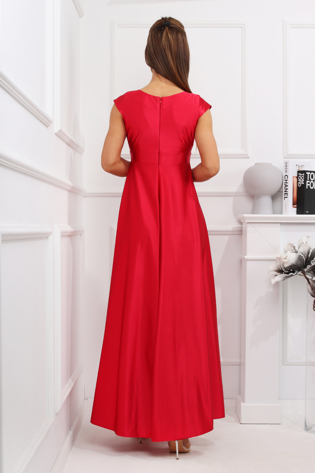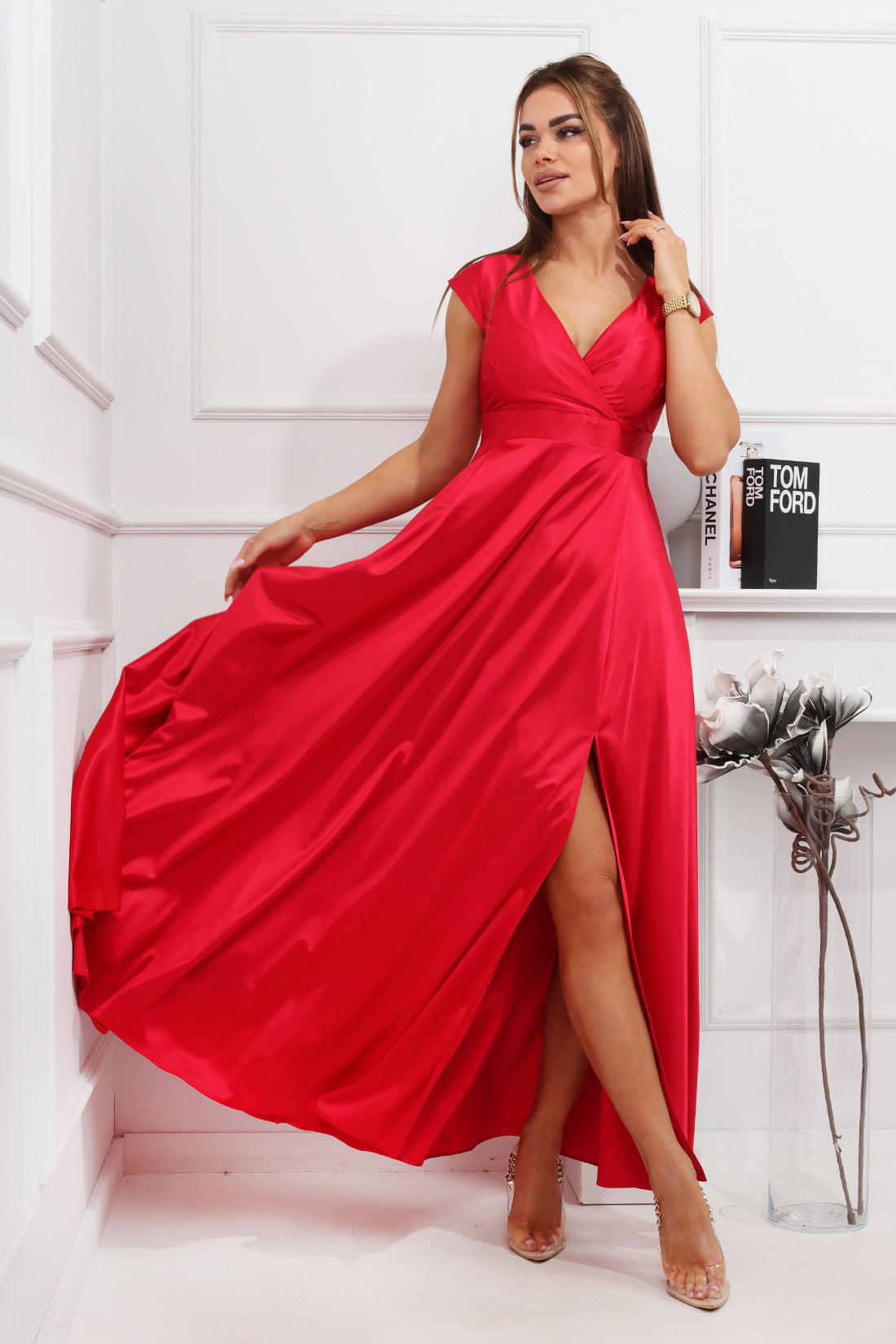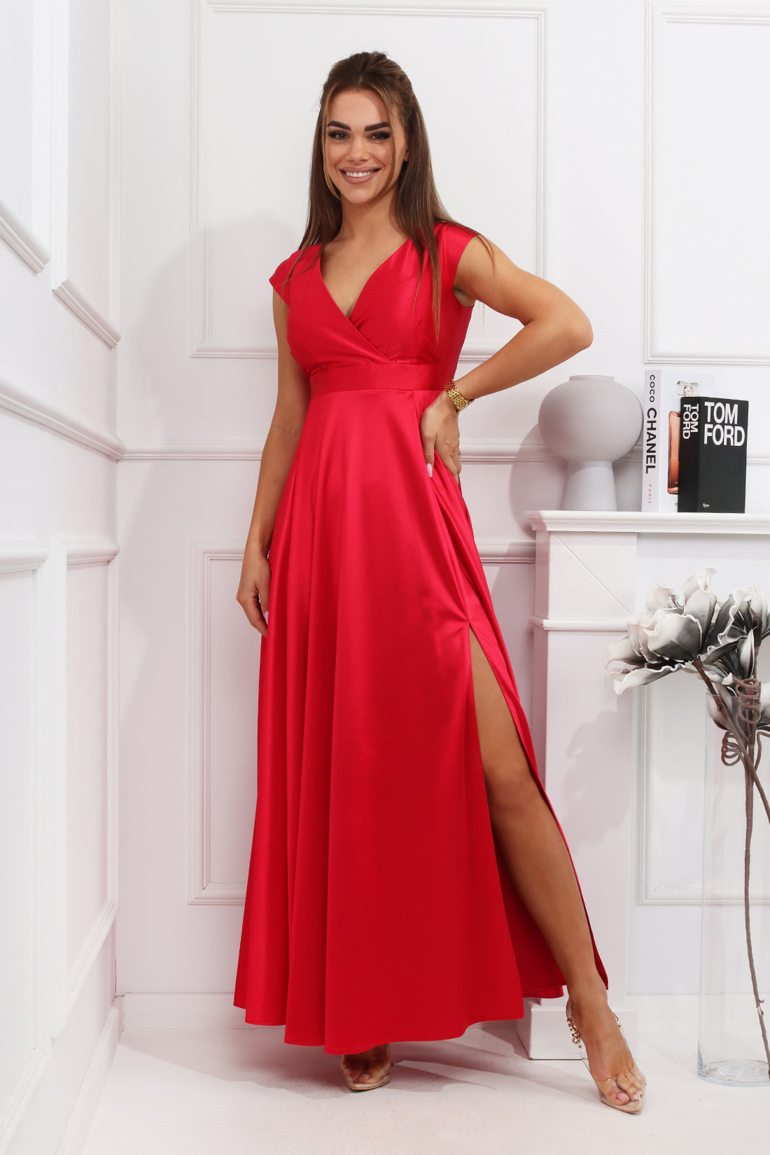 To idealny przykład sukienki na wesele. Fantastycznie eksponuje kobiece wdzięki, jednocześnie tuszując drobne niedoskonałości. Wcięcie pod biustem i luźno puszczone biodra wysmuklają sylwetkę, i sprawiają, że wygląda ona zgrabnie, zapewniając przy tym niezwykłą swobodę noszenia. Rozcięcie na nodze dodaje jej zwiewności i lekkości.